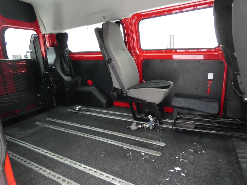- Für Selbstfahrer ( Fahrersitz elektrisch verstellbar) bzw. Passivfahrer im Rollstuhl geeignet