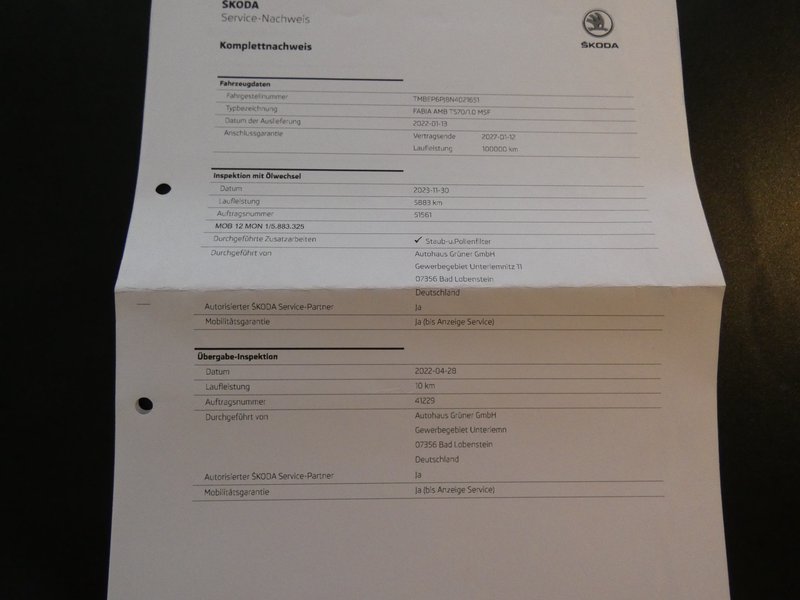 - Skoda Anschlussgarantie bis 12.01.2027 oder max. 100.000KM