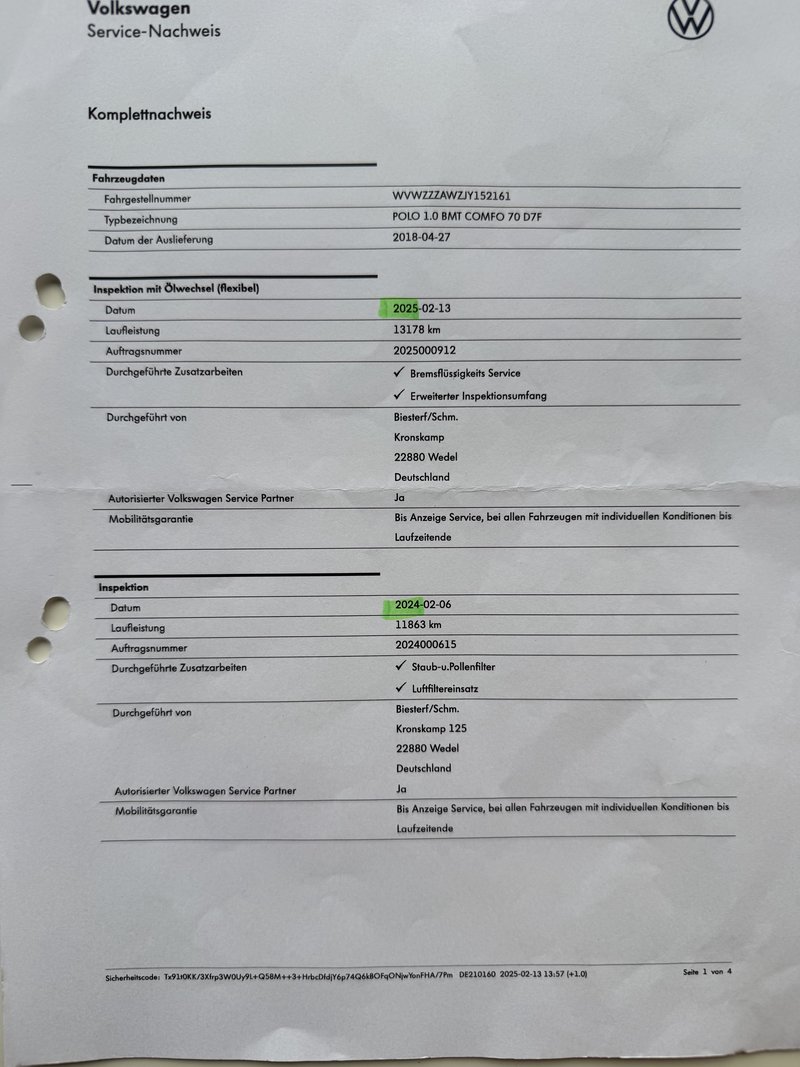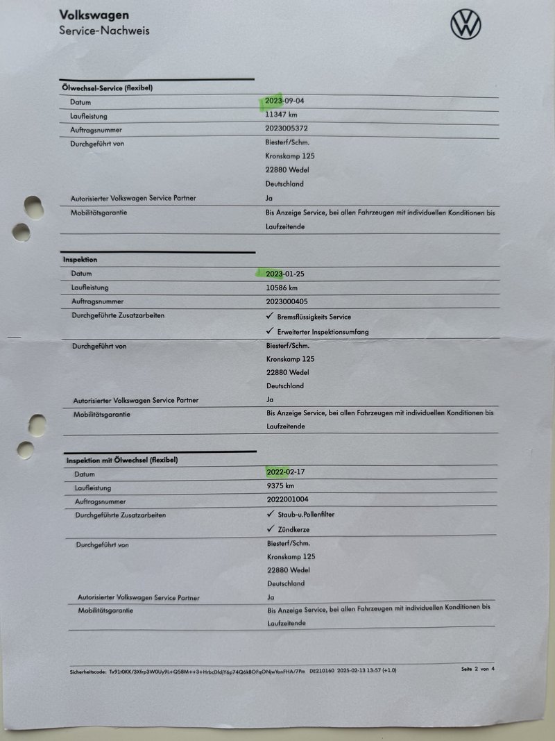 - letzte Inspektion mit Ölwechsel bei 13.178 km in 02.2025