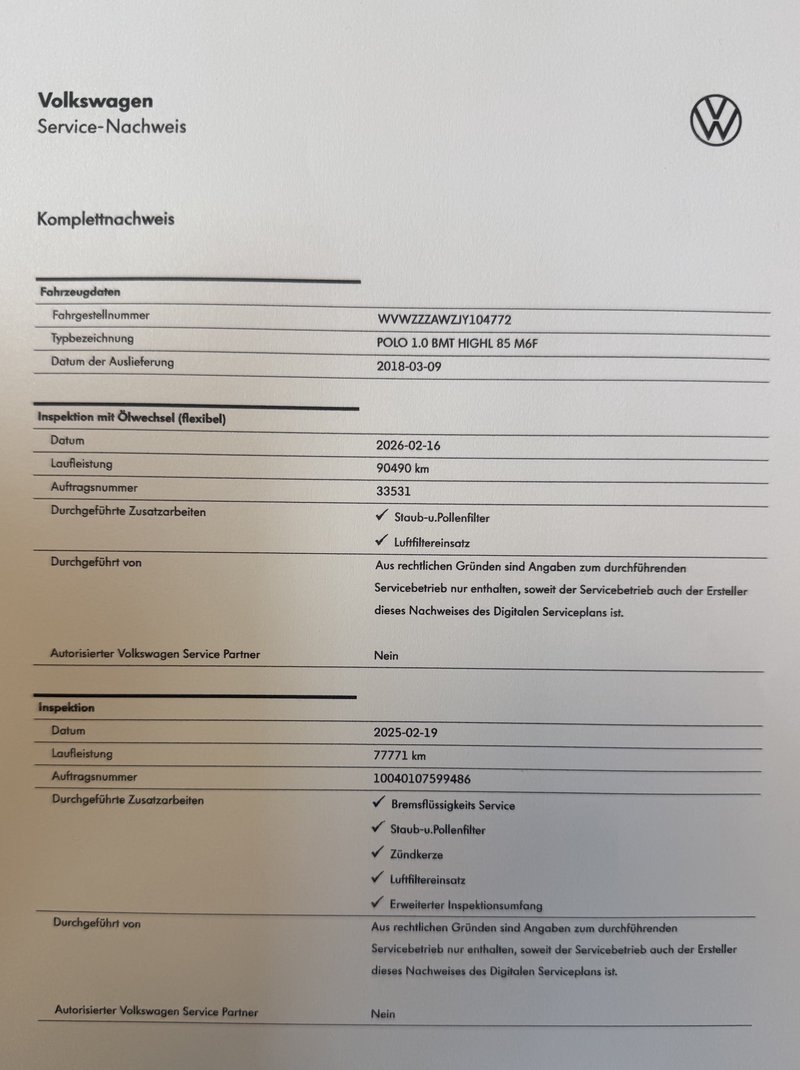 - letzte Inspektion mit Ölwechselservice in 02.2026